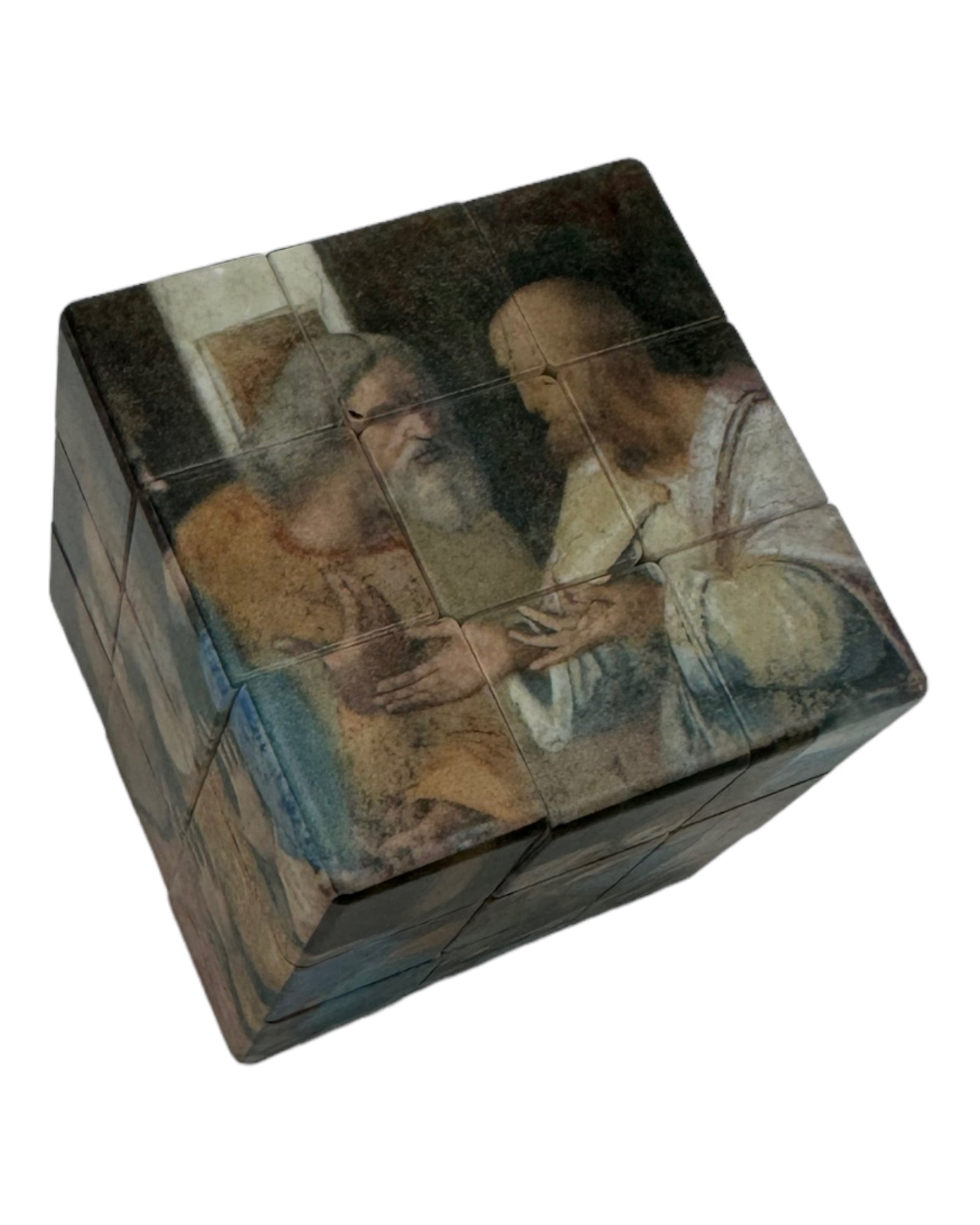 Personalized game cube with reproduction details of Leonardo, the Last Supper on 6 faces. In cardboard gift box. Measurements: 5.6x5.6x5.6 cm