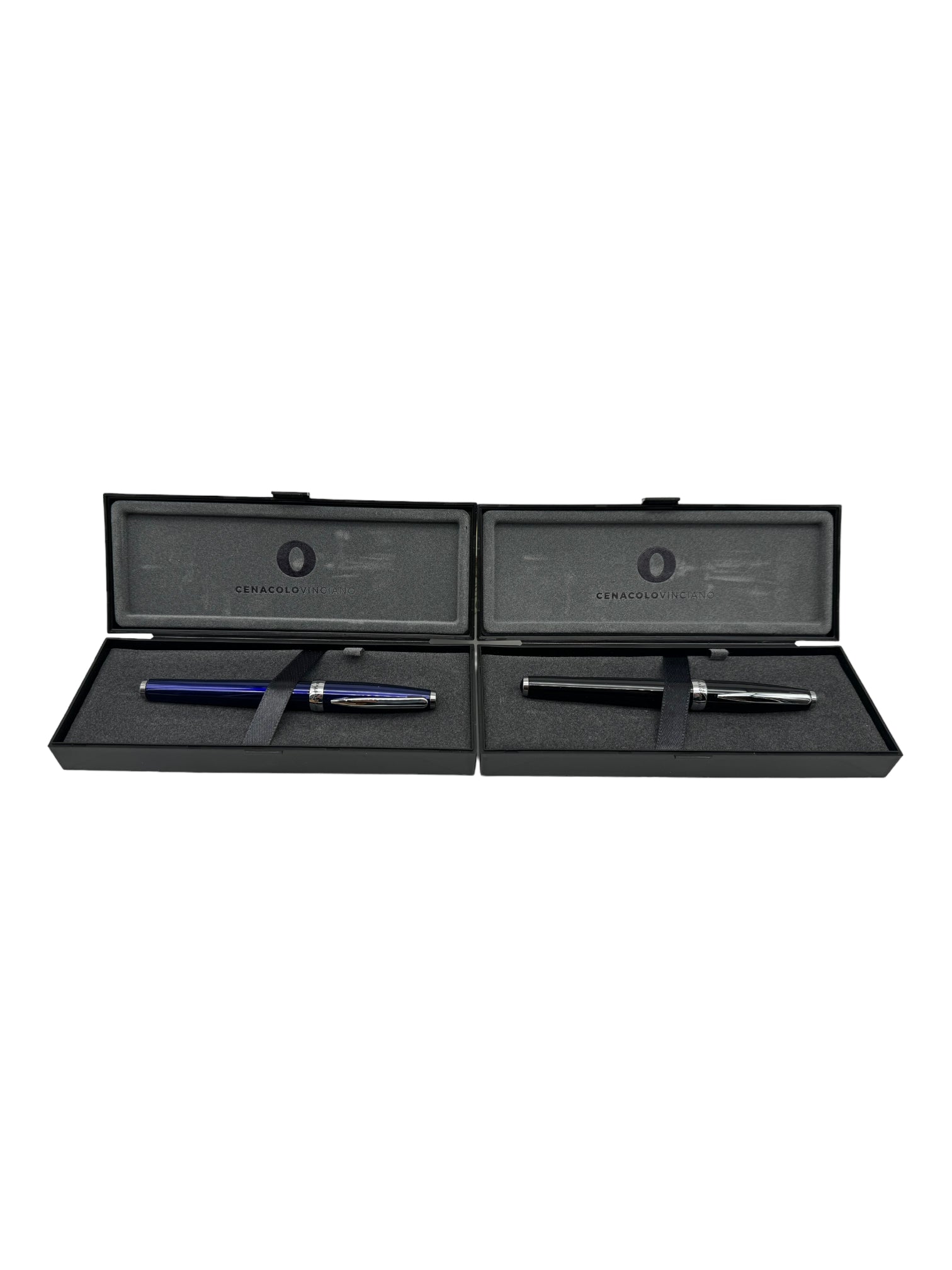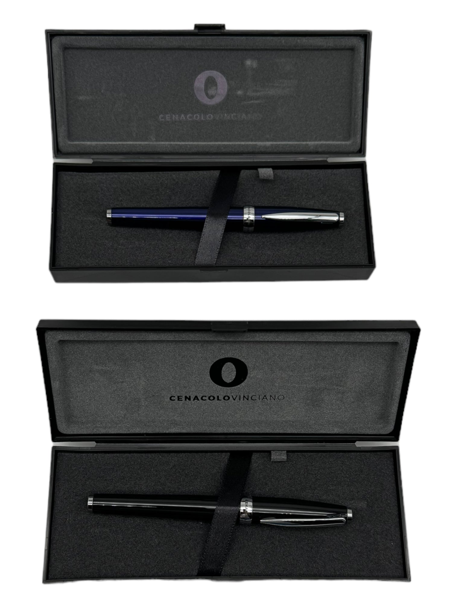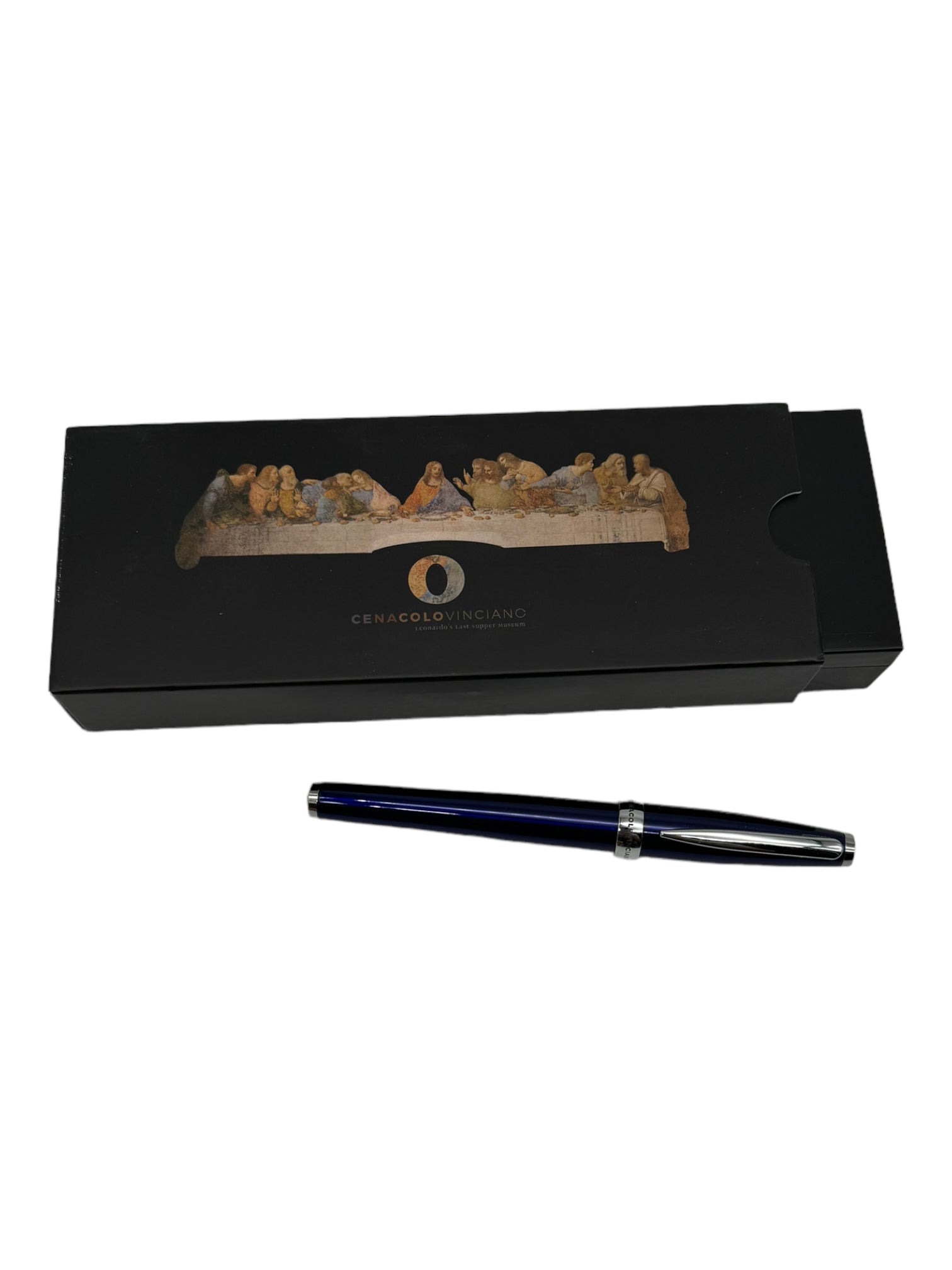 Black rollerball pen with Cenacolo Vinciano logo. Sold with black case and Monteverde USA® G23 refill made in Germany with ceramic barrel. Black ink.